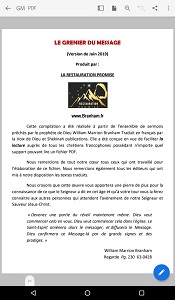 Le fichier contient une table de matière détaillée, regroupant la liste des sermons en ordre chronologique et alphabétique, l'exposé de Sept Ages de l'Eglise, les différents livres édités par la Voix de Dieu, Ainsi son téléchargement, vous pouvez utiliser n'importe quelle application pouvant lire et exploiter correctement un fichier PDF.